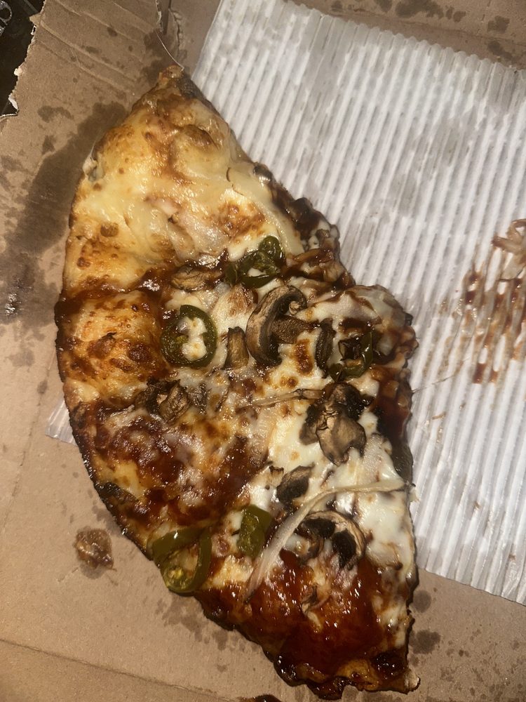 Handmade Pan Pizza: Available with light alfredo sauce or honey barbecue sauce, topped with fresh ingredients like mushrooms, onions, and a blend of cheeses.